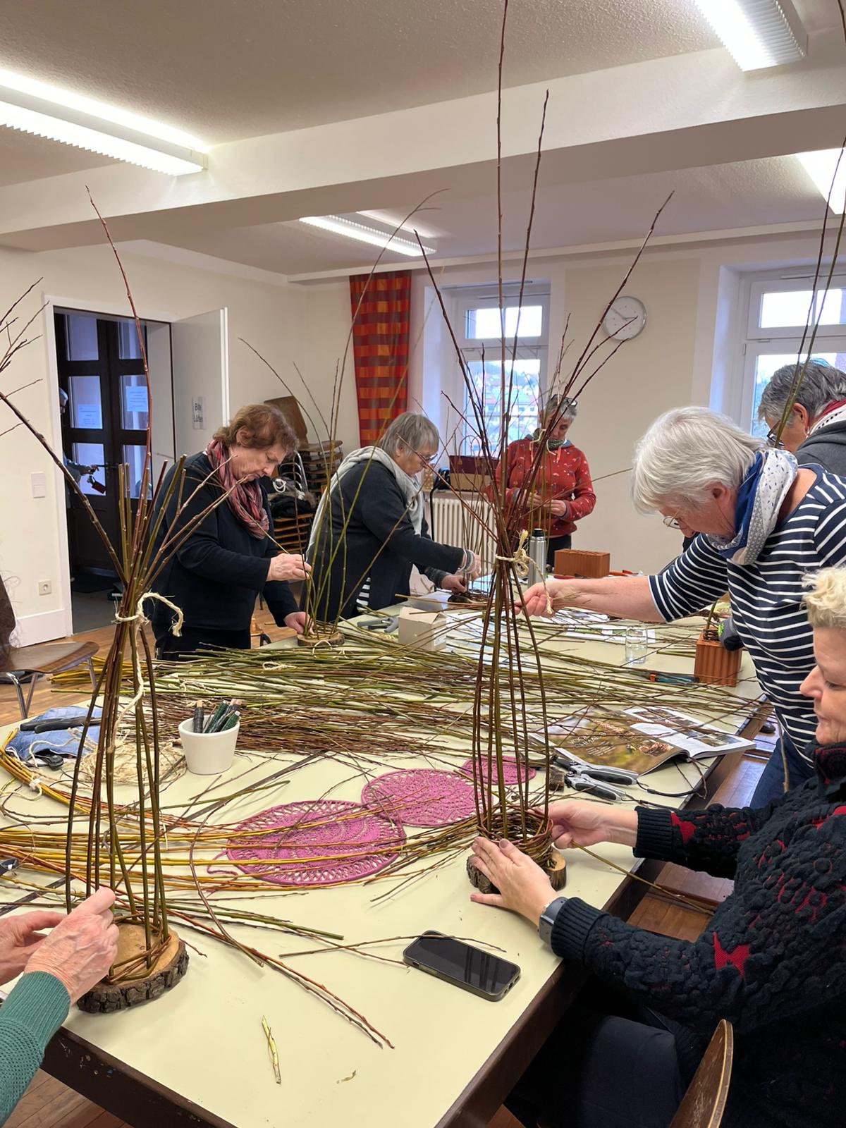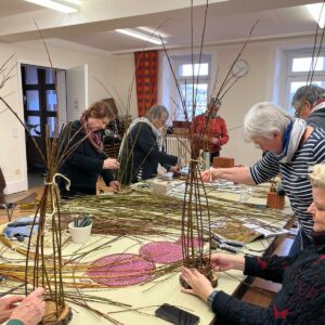 Am Freitagnachmittag (30.01.26) machten sich 15 gutgelaunte LandFrauen und Gastlandfrauen unter guter fachfraulicher Anleitung, viel Freude und Phantasie ans Werk kleine und/oder große Kunstwerke aus heimischen frischen Weidenruten herzustellen.